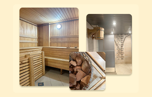 Спортинвентарь, мужские и женские раздевалки, душевые и с/у, сауна и солярий. Всегда в наличии кулер с водой.